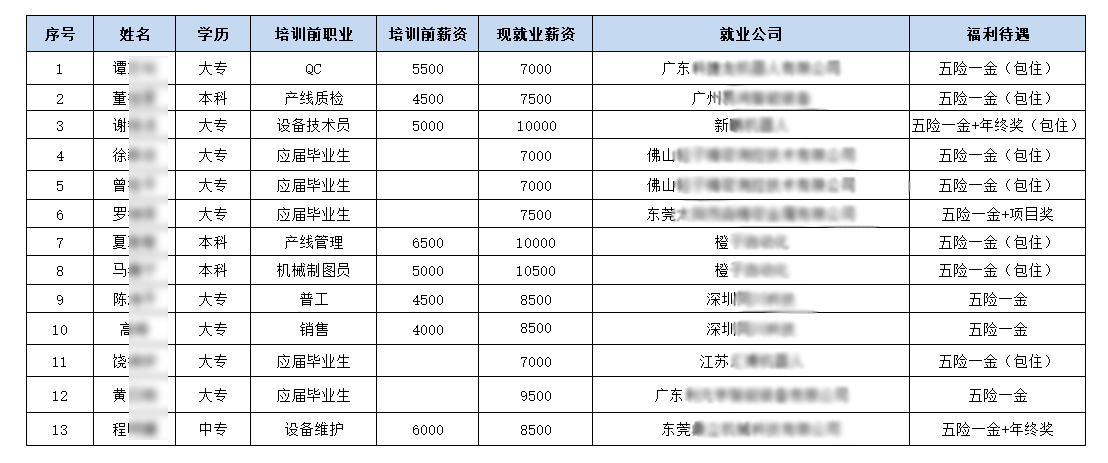 犀靈機器人培訓班第7期共招生13名,現(xiàn)就來平均薪金為8346元