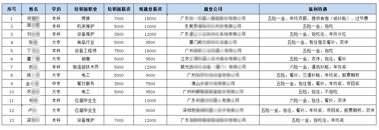 第11期學員并不是參加工作時間最長的,但為何能超過第1期學員,小編分析可能因為本期學員學歷本科的較多,起薪較高,本期學員共7名本科學員,占比超過一半。另外由于犀靈機器人