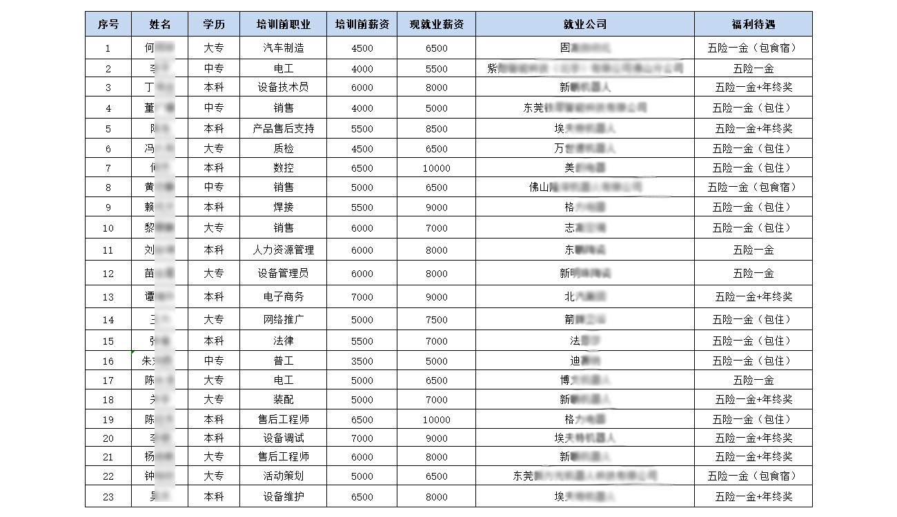也是學(xué)員最多的一期,達到23人,雖然平均收入暫時較低,讓人振奮的是他們居然100%還在從事著與工業(yè)機器人相關(guān)的工作。
