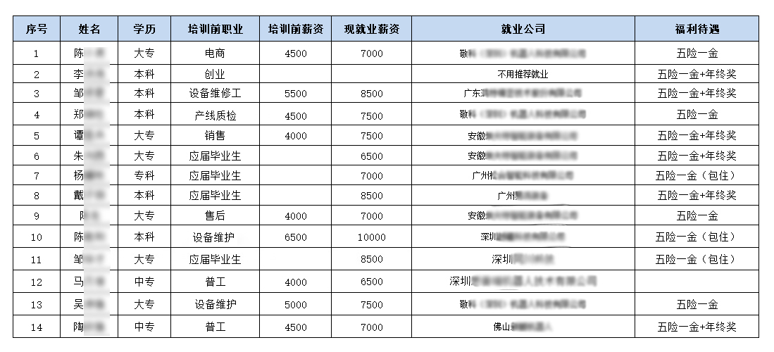 第19期學(xué)員2018年8.10號畢業(yè),就業(yè)時間半年多,共14位學(xué)員,截止2019年3.20日,平均薪金為7615元,本期的李同學(xué)由于是家里做這個行業(yè)的生意,因此不需要推薦就業(yè)。