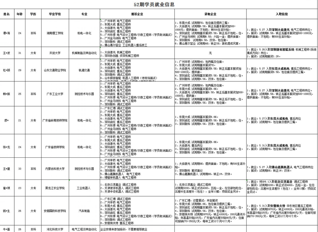 這個月是爆發(fā)的一個月,犀靈機(jī)器人工業(yè)機(jī)器人系統(tǒng)集成研發(fā)班52期的10名學(xué)員成為了人才市場上的香餑餑,多家企業(yè)展開了激烈的人才爭奪戰(zhàn),下面小犀就帶大家一起領(lǐng)略一下52期學(xué)員的就業(yè)風(fēng)采。
