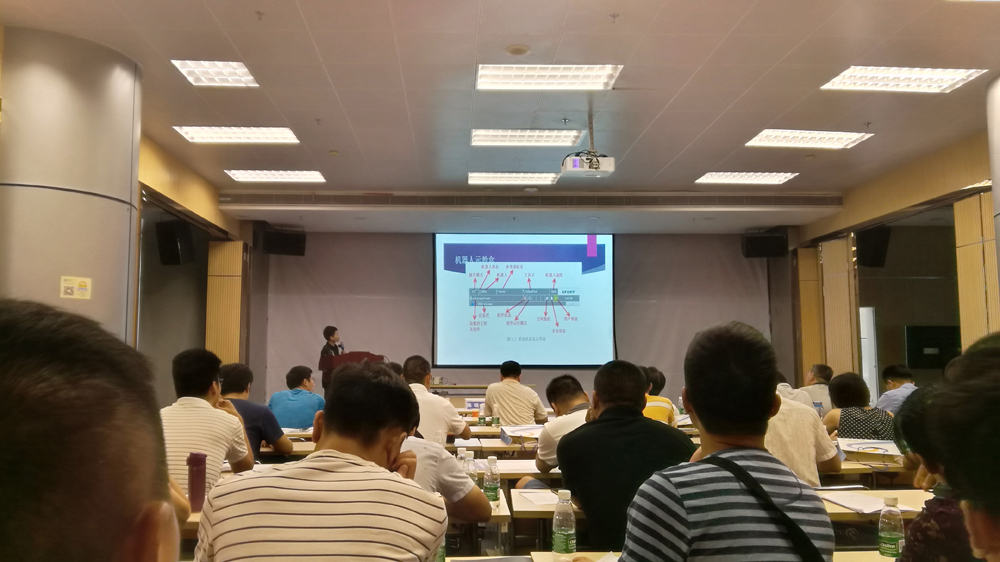 8月25日,新鵬機器人資深工程師柯明波為教師們分析自動化流水線技術及在實際項目進程中的關鍵點與難點,并現(xiàn)場解答了教師們的疑惑。