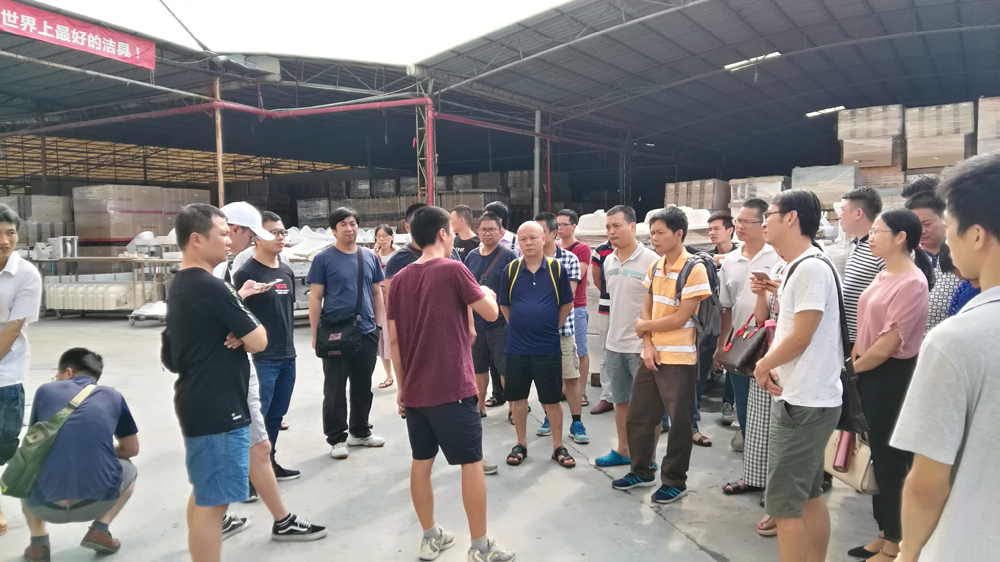 東鵬潔具郭科長給教師們講解自動化產(chǎn)線工藝