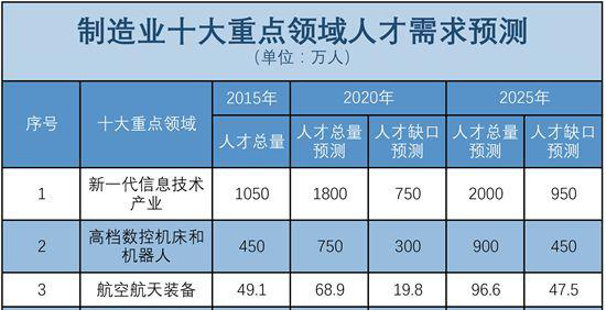 圖片截取于《制造業(yè)十大重點領(lǐng)域人才需求預測》