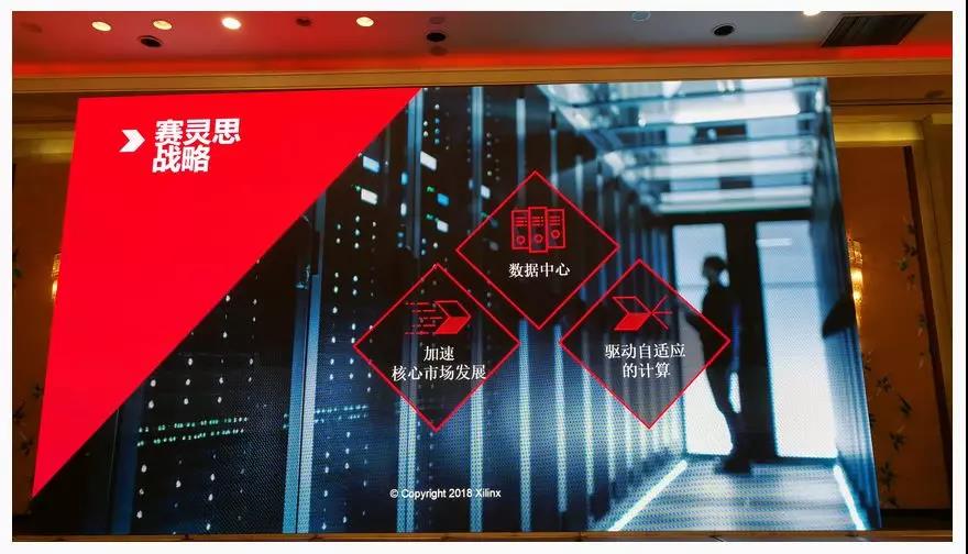 賽靈思在2018年發(fā)布了新的戰(zhàn)略:數(shù)據(jù)中心優(yōu)先,加速傳統(tǒng)的八大核心市場,驅動自適應的計算。其傳統(tǒng)的市場大概分成八個方向:第一類汽車,在AI出來之前,賽靈思在汽車行業(yè)已經深耕了十幾年,有各種各樣的符合車規(guī)認證的車載芯片。在通信領域,各種各樣的FPGA做高性能的信號處理。包括航空航天,傳統(tǒng)的工業(yè)控制、醫(yī)療,包括儀器儀表。