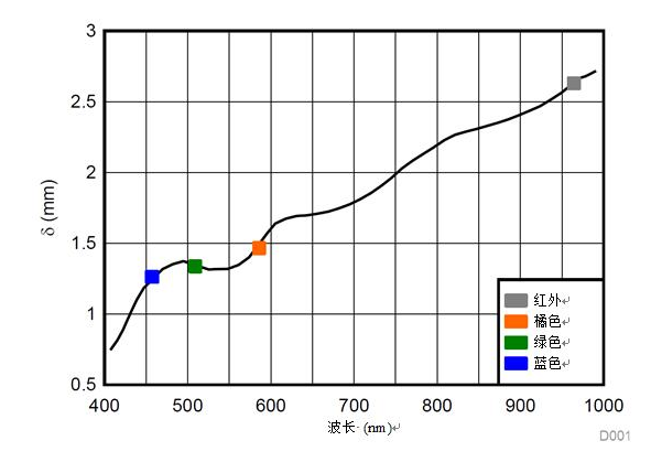 圖1:顯示一系列不同波長(zhǎng)光源的光學(xué)穿透深度(δ)