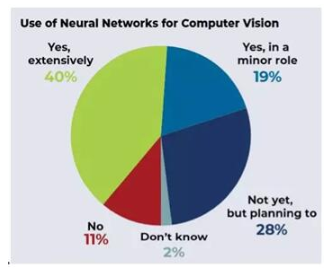 ? 圖3:87%的開發(fā)者已經(jīng)使用或計(jì)劃在不久的將來使用神經(jīng)網(wǎng)絡(luò)來執(zhí)行計(jì)算機(jī)視覺功能。(來源:EVA)