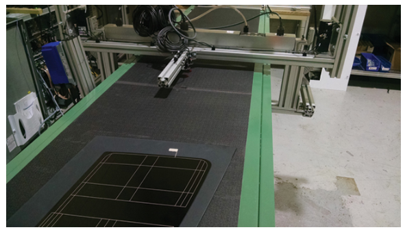 圖3.汽車天窗玻璃上的跡線在三菱電機(jī)的線掃描攝像機(jī)視野下通過時(shí)進(jìn)行檢查。