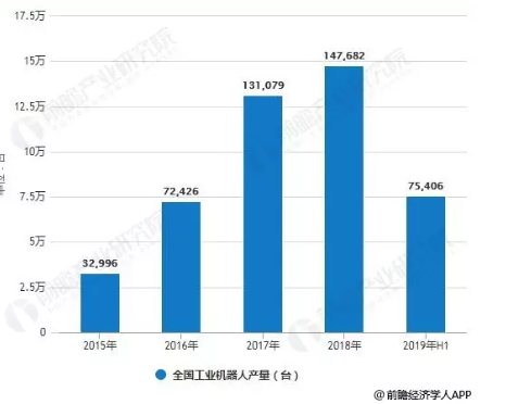 2015-2019年H1全國(guó)工業(yè)機(jī)器人產(chǎn)量統(tǒng)計(jì)情況