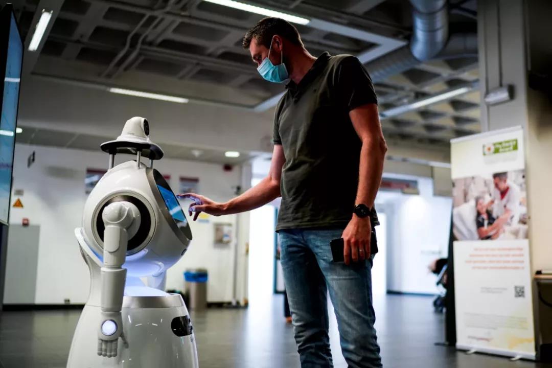 例如,在比利時(shí)的安特衛(wèi)普大學(xué)醫(yī)院,機(jī)器人已經(jīng)占據(jù)了醫(yī)療保健一線的位置。攜帶粗短胳膊和軀干的兒童大小的機(jī)器人迎接來院的懷疑自己患有COVID-19的患者。