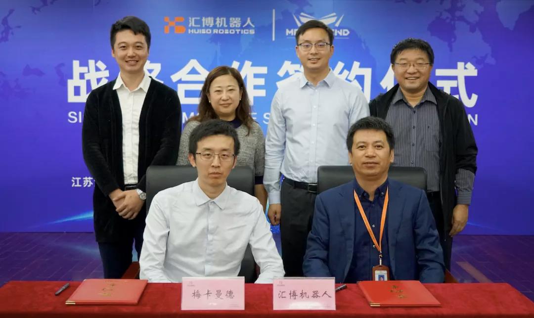 此次戰(zhàn)略合作簽約儀式,由匯博集團(tuán)總裁王振華、匯博集團(tuán)COO秦磊,梅卡曼德機(jī)器人CEO邵天蘭、聯(lián)合創(chuàng)始人&業(yè)務(wù)VP付翱、銷售總監(jiān)楊培、銷售經(jīng)理劉富增等領(lǐng)導(dǎo)親臨現(xiàn)場(chǎng),共同見證并進(jìn)行了戰(zhàn)略合作簽約儀式。