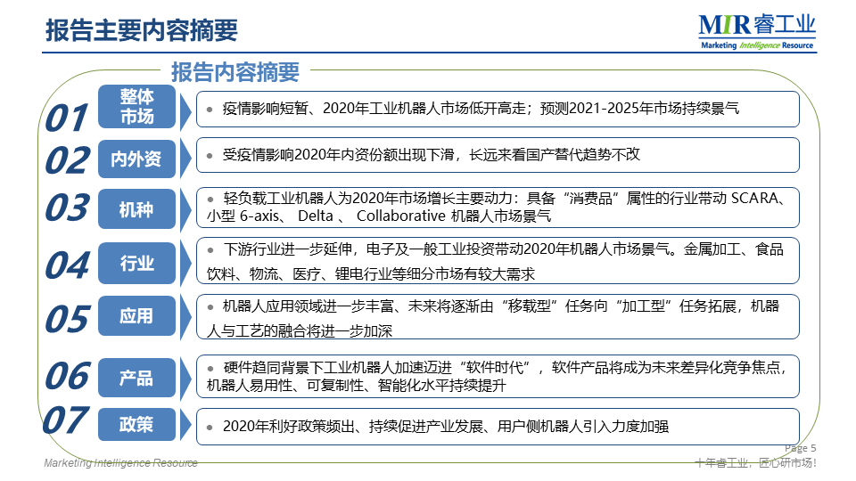 MIR 睿工業(yè)編制了《2021年中國工業(yè)機(jī)器人市場年度報(bào)告》,聚焦工業(yè)機(jī)器人產(chǎn)業(yè)鏈,從產(chǎn)品、行業(yè)、應(yīng)用等多方面解析2020年工業(yè)機(jī)器人市場變化以及未來走向。