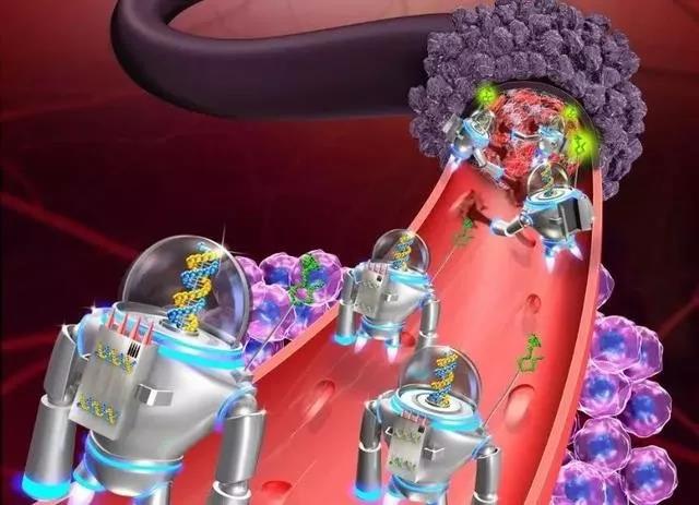 第一步,巡察:在你的血管里放進(jìn)500萬(wàn)個(gè)納米機(jī)器人,這些納米機(jī)器人能夠24小時(shí)在人體內(nèi)巡邏,一旦發(fā)現(xiàn)病灶就立即鎖定,確認(rèn)后釋放所攜帶的藥物!
