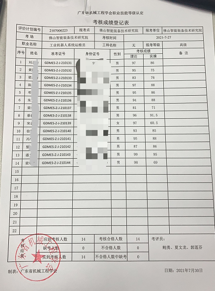 (廣東省機械工程學(xué)會職業(yè)技能等級認證考核成績?nèi)客ㄟ^)