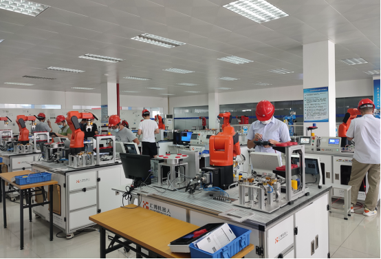 匯博機器人與犀靈機器人擁有超過2000平方米培訓(xùn)場地,深耕于工業(yè)機器人人才培養(yǎng),已為國內(nèi)800多家企業(yè)培養(yǎng)了5000多名工業(yè)機器人工程師,憑借自身優(yōu)勢現(xiàn)針對每個工業(yè)機器人工業(yè)機器人系統(tǒng)運維員考證等級分別制定相應(yīng)完善的教學(xué)資源包,讓學(xué)生更快速的掌握考試知識點,同時配備20臺考證實訓(xùn)設(shè)備,為學(xué)生高通過率考取證書保駕護航。