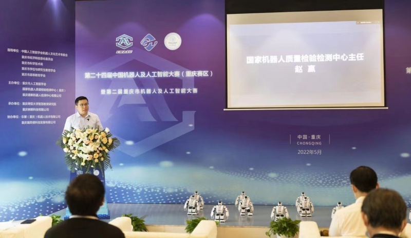5月28日上午,由中國(guó)人工智能學(xué)會(huì)機(jī)器人文化藝術(shù)專委會(huì)、重慶市經(jīng)濟(jì)和信息化委員會(huì)、重慶市科學(xué)技術(shù)局、重慶市學(xué)位與研究生教育學(xué)會(huì)、重慶市高等教育學(xué)會(huì)指導(dǎo),重慶市人工智能學(xué)會(huì)、國(guó)家機(jī)器人質(zhì)量檢驗(yàn)檢測(cè)中心(重慶)、重慶德新機(jī)器人檢測(cè)中心有限公司主辦的第二十四屆中國(guó)機(jī)器人及人工智能大賽重慶賽區(qū)選拔賽在重慶德新機(jī)器人檢測(cè)中心有限公司研發(fā)中心二樓會(huì)議室舉行開(kāi)幕式。開(kāi)幕式由重慶師范大學(xué)智慧教育研究院馬燕主持。