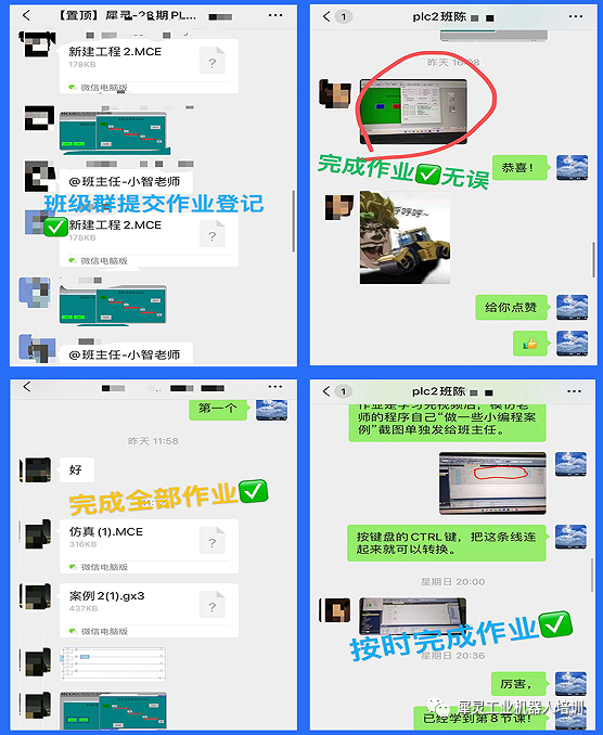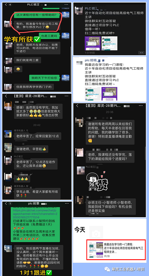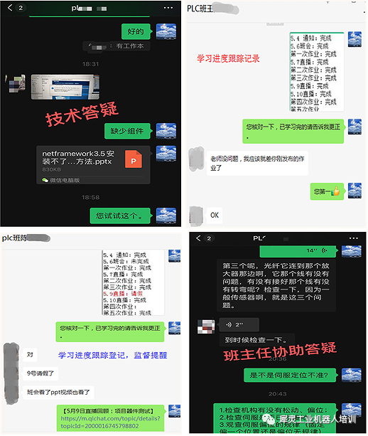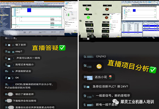 本次培訓(xùn)采用【線上知識庫+項(xiàng)目仿真直播課教學(xué)+真實(shí)工程項(xiàng)目】實(shí)戰(zhàn)貫穿的教學(xué)模式,通過項(xiàng)目制仿真教學(xué)力求達(dá)到與線下學(xué)習(xí)接近一致的效果,滿足學(xué)員在職學(xué)習(xí)PLC自動化項(xiàng)目的需求。為了讓學(xué)員擁有良好的學(xué)習(xí)體驗(yàn),采用【在線網(wǎng)課學(xué)習(xí)+線上作業(yè)練習(xí)+仿真項(xiàng)目教學(xué)+集中直播答疑+群內(nèi)問答+簽到打卡+班主任提醒監(jiān)督】的服務(wù)模式,從同學(xué)們學(xué)習(xí)到就業(yè)指導(dǎo)一站式無死角服務(wù),多角度跟蹤并提高同學(xué)們的學(xué)習(xí)效果和效率。接下來讓我們一起回顧本次培訓(xùn)的精彩瞬間。