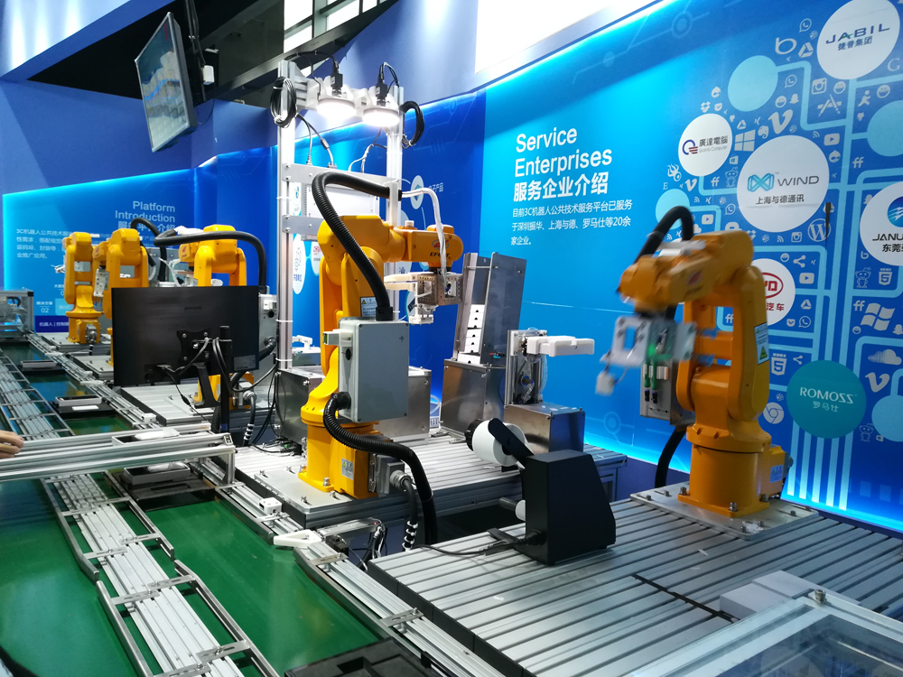 其中自動(dòng)化生產(chǎn)線的演示區(qū)域,引起了很多學(xué)員的關(guān)注,一套由數(shù)臺(tái)小型機(jī)器人和流水線組成的自動(dòng)化生產(chǎn)線,通過機(jī)器人間的嚴(yán)絲合縫的配合完成貼標(biāo)、搬運(yùn)等工序,學(xué)員們看完嘆為觀止,原來繁復(fù)的工作由幾臺(tái)機(jī)器人就能輕松快速地搞定,這就是智能制造的魅力。